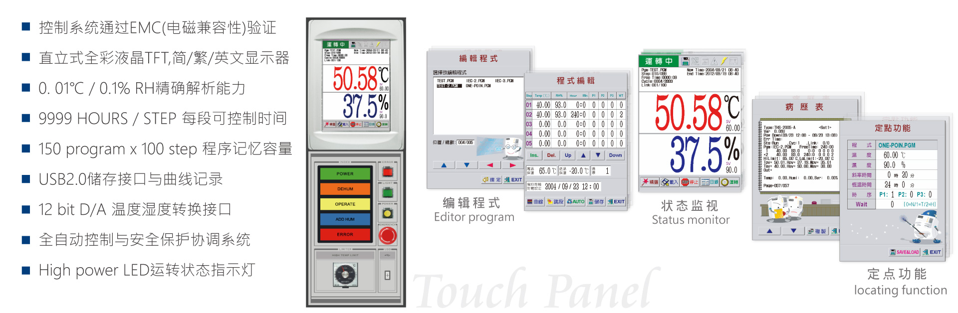 触控式面板高温试验-170℃/40~50%R.H.120小时试验结束后室温下静置2小时再行测试,24小时之后在测一次。