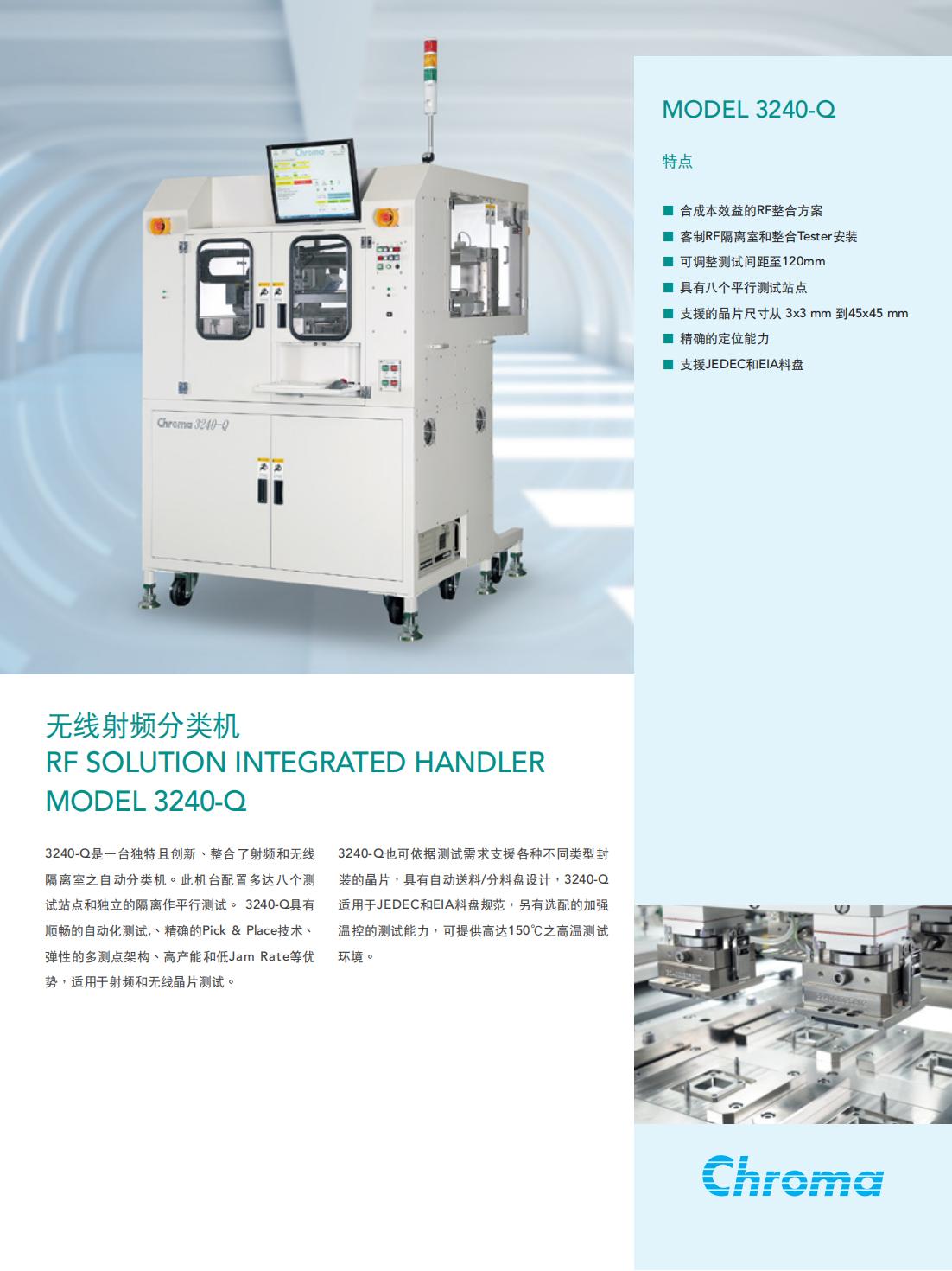 3240-Q是一台独特且创新、整合了射频和无线3240-Q也可依据测试需求支援各种不同类型封隔离室之自动分类机。