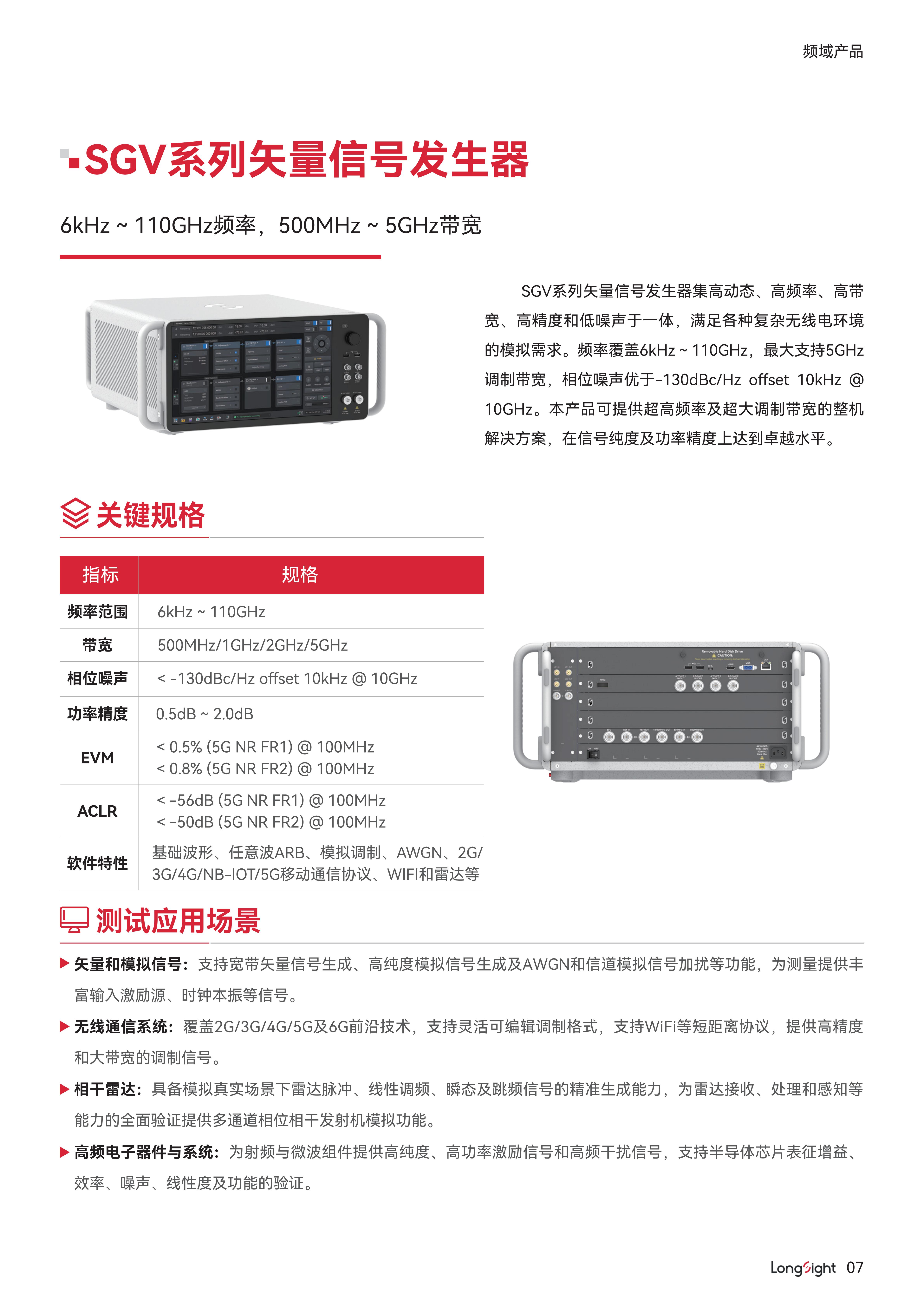 SGV 系列矢量信号发生器是万里眼推出的高端矢量信号发生器,频率范围覆盖 6 kHz ~ 110 GHz,最大调制带宽 5 GHz。